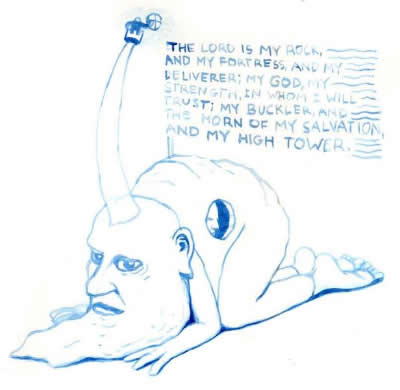 The Flaming Fire Illustrated Bible is an attempt to illustrate the entire bible, verse by verse, online… it is an ongoing project that has been around for a few years now and that you can participate in… see their faq for more information. I was poking on there and thought I’d share some of the illustrations by cartoonists that I enjoyed. Click on them to go to the large versions on the Flaming Fire site.